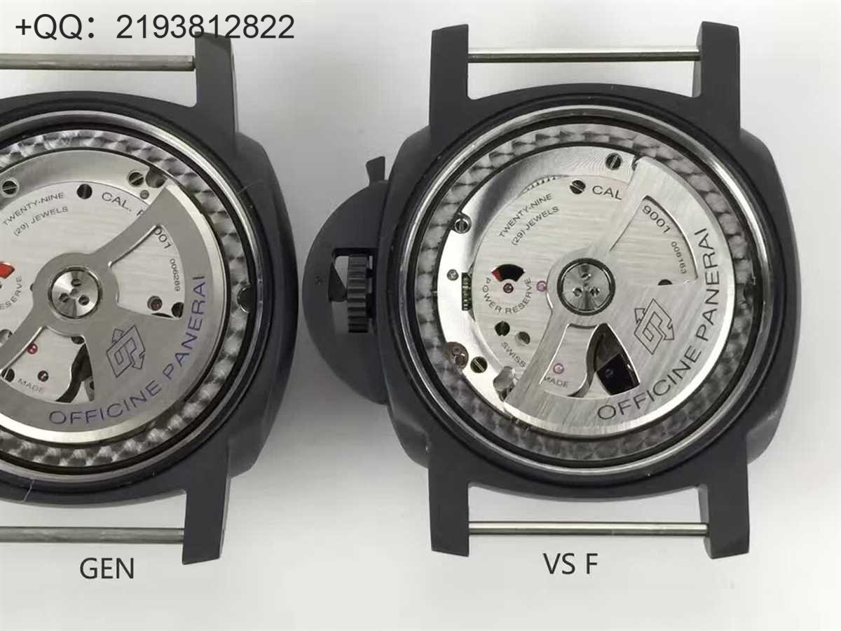 沛纳海VS终极完美版pam00441/PAM441。经过两年多的研发,克隆了原装全自动p.9001机械机芯,通过背面透底可以看出避震器摆轮位置改到了7点钟对应的位置,和原装位置一摸一样,其他版本都是在10点钟位置或6点钟位置!沛纳海VS终极完美版pam00441/PAM441。经过两年多的研发,克隆了原装全自动p.9001机械...