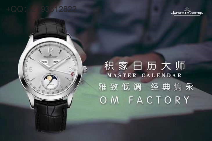继OM厂宝珀月相之后,OM最新力作积家全月相大师系列:所有功能及外观均与原版一致 细节分解:【1】:锅盖形表盘从侧面看是有微微弧度的多次修改确保神韵与原版相媲美。 【2】:表壳:壳面四角线斜度线条大小为确保与原版一致多次修改完美呈现 表耳弧形鱼尾线线条立体优美 完美演绎 【3】:表扣中间无缝隙从侧面看...