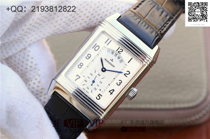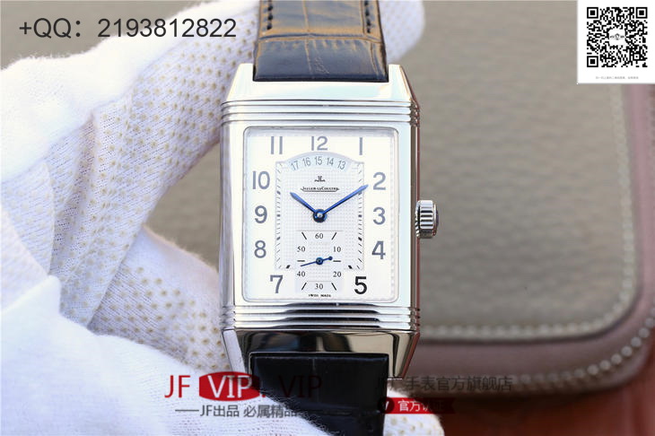 积家翻转系列Reverso腕表,表背可翻转至正面,让背面表盘的精密机械零件一览无余,彰显个性,突破常规的传统表盘。搭载原版复刻机芯,316精钢的几何外形表壳,刻有装饰刻纹,表背具有手动打造的鱼鳞纹饰。黄金分割比例尺寸48.5×30mm,意大利小牛皮表带搭配原装折叠扣,镜面采用高通透蓝宝石玻璃,直体阿拉伯数学表盘是积家唯一的标志性腕表!矩形可翻转的特点是你优雅时尚风格的象征