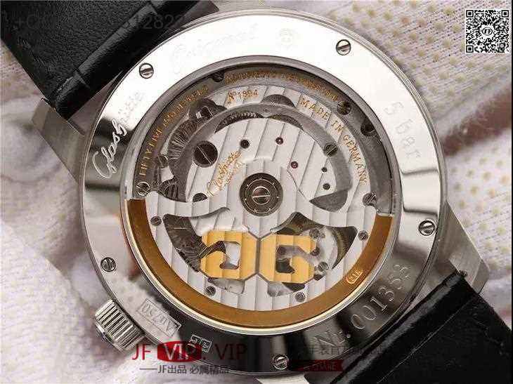格拉苏蒂V3升级版大日历陀飞轮42mm腕表。男士腕表,皮表带,陀飞轮机械机芯,透底