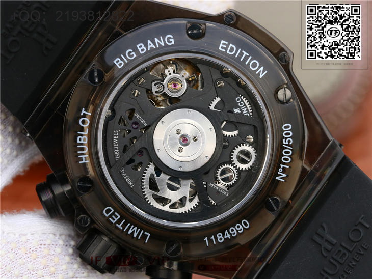 HB宇舶表年度最佳复刻作品——宇舶BIG BANG系列411.JX.4802.RT“全透腕表”【精彩细节】1.还原正品表盘后龙飞凤舞的镂空布局,2.采用与原装同样的丙烯酸有机玻璃极致克隆——完成不可能完成的任务。该材质不仅硬度高,且具有抗腐蚀,耐磨损等卓越物理特性。【机芯功能】腕表直径45mm。采用增强版7750机芯改原装HUB.1242型芯,实现所有功能吻合正装。【精益求精】HB工厂全力以赴,层层把关,在保证完美“透视感官”的同时,竭心尽力还原正品的每个细节。【赠品】附赠一副同款不同色的天然橡胶表带(可替代原装)复刻界首款“全透佳作”