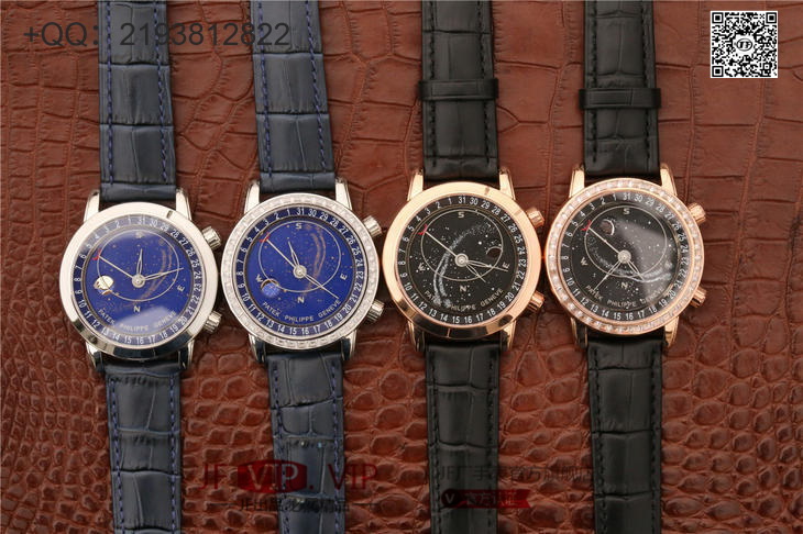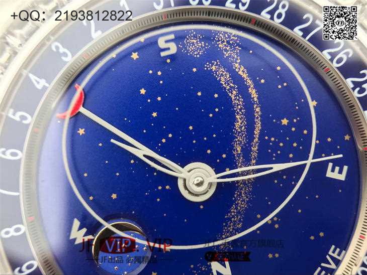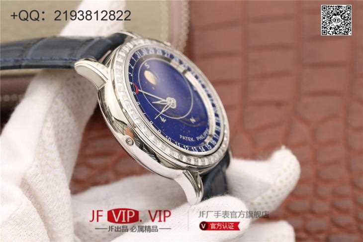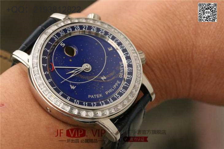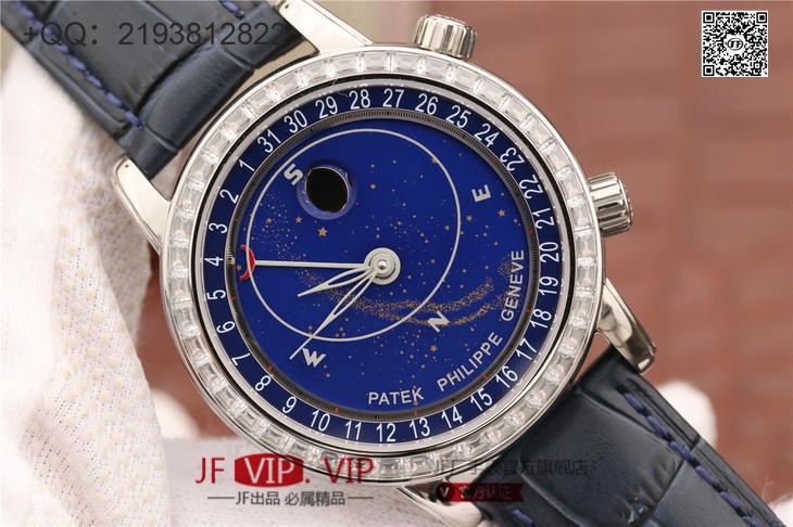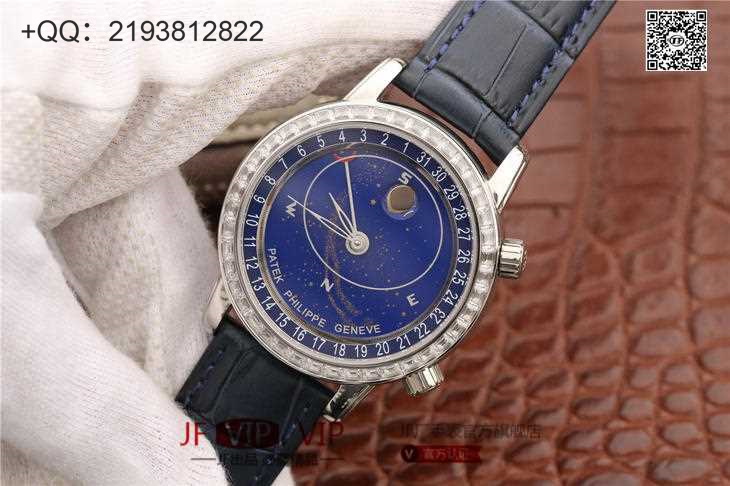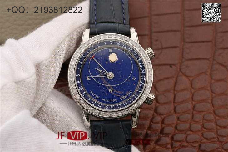 百达翡丽星空升级终极版6102款|6104款超级复杂功能系列。日内瓦苍穹系列你可想象把星空佩戴在腕上吗?这款星空腕表独具特别星象功能,蓝色圆表盘上就能欣赏日内瓦苍穹图,还有金色月球运行轨迹,熬时20个月 采用日本9015改造而成的珍珠陀,和正品一样机心  表盘上的月亮会根据天空的月亮月满圆月蚀弯的情况自动变化  表壳前后玻璃采用先进技术处理让玻璃折射光提高,让表盘看起来更加通透 似乎没有玻璃的感觉  后盖和玻璃也采用和正品一样凹型 打破传统手表后盖和玻璃平行,白光表壳在6字位表壳和表带连接处的宝石采用南非真钻 支持宝石检验,2字把头调时间,日历,月亮盘 5字位把头调星空盘转动。此表在手别无所求。