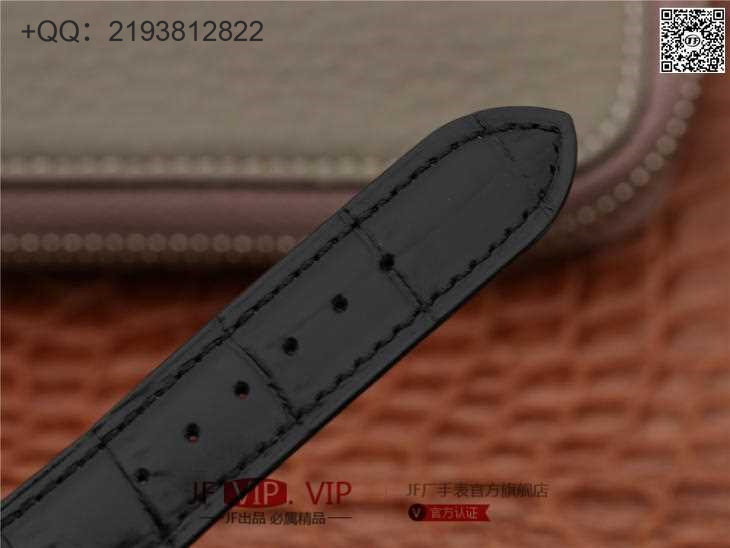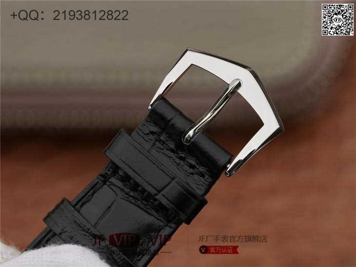【表带】配备经典的黑色/棕色的意大利小牛皮表带,纹路清晰,质感上乘,与白色盘面相得益彰。针式表扣打磨十分齐整光亮。表带扣均可通用与正品。