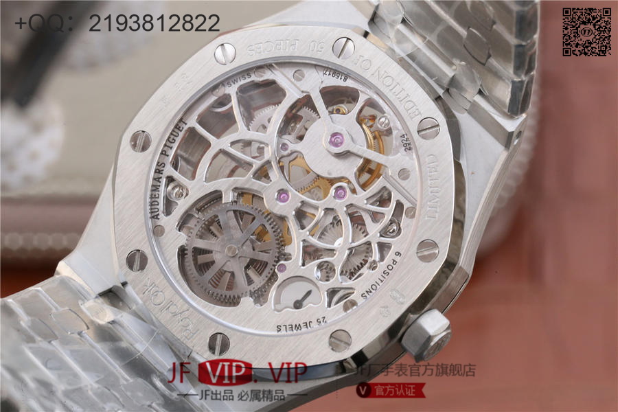 爱彼2018新款皇家橡树26518真陀飞轮男士腕表。这是一项对精度密要求极其严苛的高级制表工艺,丝毫分差都可能会影响机芯的走时精度或防震效果。这款全新腕表均搭爱彼自主研发的镂空Camber 2924手动上链机芯,动力储存为80小时,表壳直径41mm厚度12.4毫米。早在1930年代,爱彼就已经掌握镂空装饰这一精密高级工艺,时至今日依然保持着传统制作方式:通过锉削、装饰、直至最终的装饰打磨,出于美学与技术的双重考量,需要完全通过手工完成。