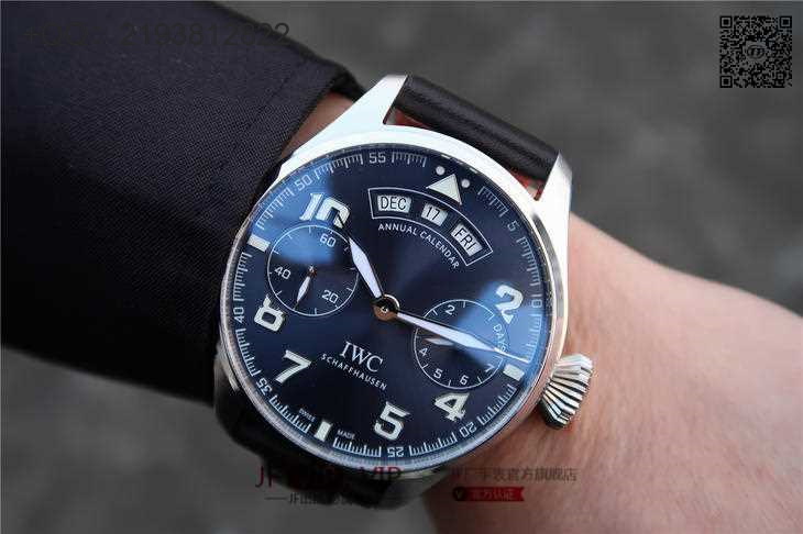 万国大型飞行员系列IW502703。年历大飞全真功能,7天动能 Big Pilot 年历表 表为基础,最特别之处是将整个金质摆陀雕刻成 小王子站在星球上 表壳采用了316L钢电18k金 46mm 蓝色表盘搭配大尺寸数字时标,月 日 星期 窗依次排列于表盘12点 让你可以最直接观读取到今天的日历信息,这枚年历表一年仅需在2月最后一天调整一次日前 9点为小秒针盘,3点为7天动力存储显示 透过蓝宝石玻璃水晶表背 最引人注意的就是 小王子站在星球上 的小金陀 一 在你佩戴这枚表的时候,小王子站着的星球会随着你手腕的动作而旋转,将动力输送到发条盒,推动时间的前进。与去年年历一样搭载 YL Calibre6611机芯