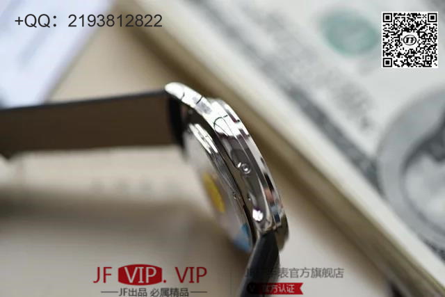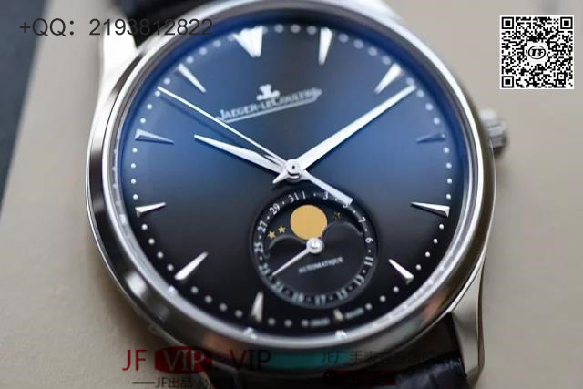 ZF积家大师系列月相,表壳直径39mmX9.9mm与原装同步。六点钟的子盘拥有阳历阴历(月相)双期显示,月相一月转一圈,功能和正品一致。