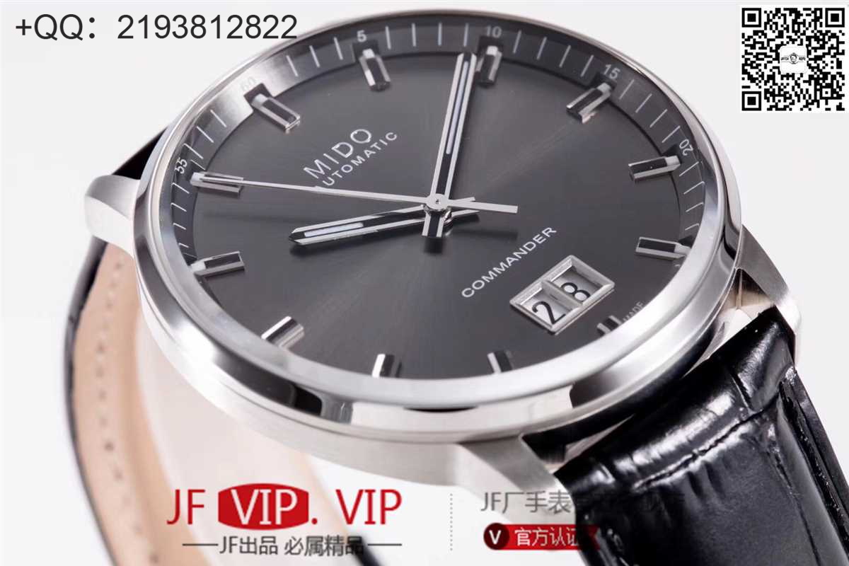 MIDO美度指挥官系列腕表指挥官系列纪念日“大日历”全自动机械腕表是为纪念美度表百岁华诞而问世的表款。其6点钟位置大型日期窗口,提供清晰的日期显示。放射纹缎面打磨的表盘风格简洁利落,雅致的圆形缎面打磨精钢不锈钢表壳更能发挥稳固的保护功能,抛光表圈的搭配更显画龙点睛的作用。表壳?材料: 不锈钢、 PVD(物理气化沉积)涂层?直径: 42.00 mm?表耳间距: 22.00 mm?防水: (50米/165英尺)?玻璃: 蓝宝石水晶镜面?表壳高度: 11.97 mm?透明底盖机芯?机芯型号: 全自动机械机芯?大型日期视窗表盘?表盘颜色: 烟煤灰色、银白色、黑色?运行时间: 镶贴时标表链?不锈钢、黑色皮革表带不锈钢采用高等级的316L不锈钢来打造精钢部件,从而使佩戴者在长时间佩戴腕表之后也不会造成不适感。这种材质具有抗腐蚀性、不受磁场影响,并具有出色的耐用性,使得美度表的不锈钢腕表经久耐用,能够经得起时间和天气的考验。另外,这种金属不仅具备多项技术特性,其色泽光亮的外观和令人愉悦的质地,也适合广泛应用于其他领域。PVD镀层物理真空电镀(PVD)是一道高技术的加工过程,能在腕表组件表面生成一层坚固、无杂质的镀层,以确保其长时间抗腐蚀的性能。这种细微薄层增强了腕表的硬度和坚固性,同时还可呈现黑色、玫瑰金或黄金等美丽色泽,增添其典雅美感。而它的低致敏特性深受各界喜爱,并被广泛应用于各种领域。表镜玻璃表镜玻璃能衬托做工精美的表盘,呈现惊人的立体纵深美感。它能在多种条件下确保时间的清晰易读,同时更与腕表的典雅设计相得益彰。坚固耐撞的特性让表镜经久耐用,即使多年后仍能保持其清澈无瑕的透明度。皮革采用纯正皮革制作其精美的天然皮革表带。由多层皮料手工精心制作和缝制而成的皮表带,除具备优异的耐用性之外,还因为其抗过敏的特性,而让佩戴更加舒适。美度表真皮表带的侧缘皆经过考究的上漆处理,更添隽永风范,呈现出高水平的做工和典雅的韵味。