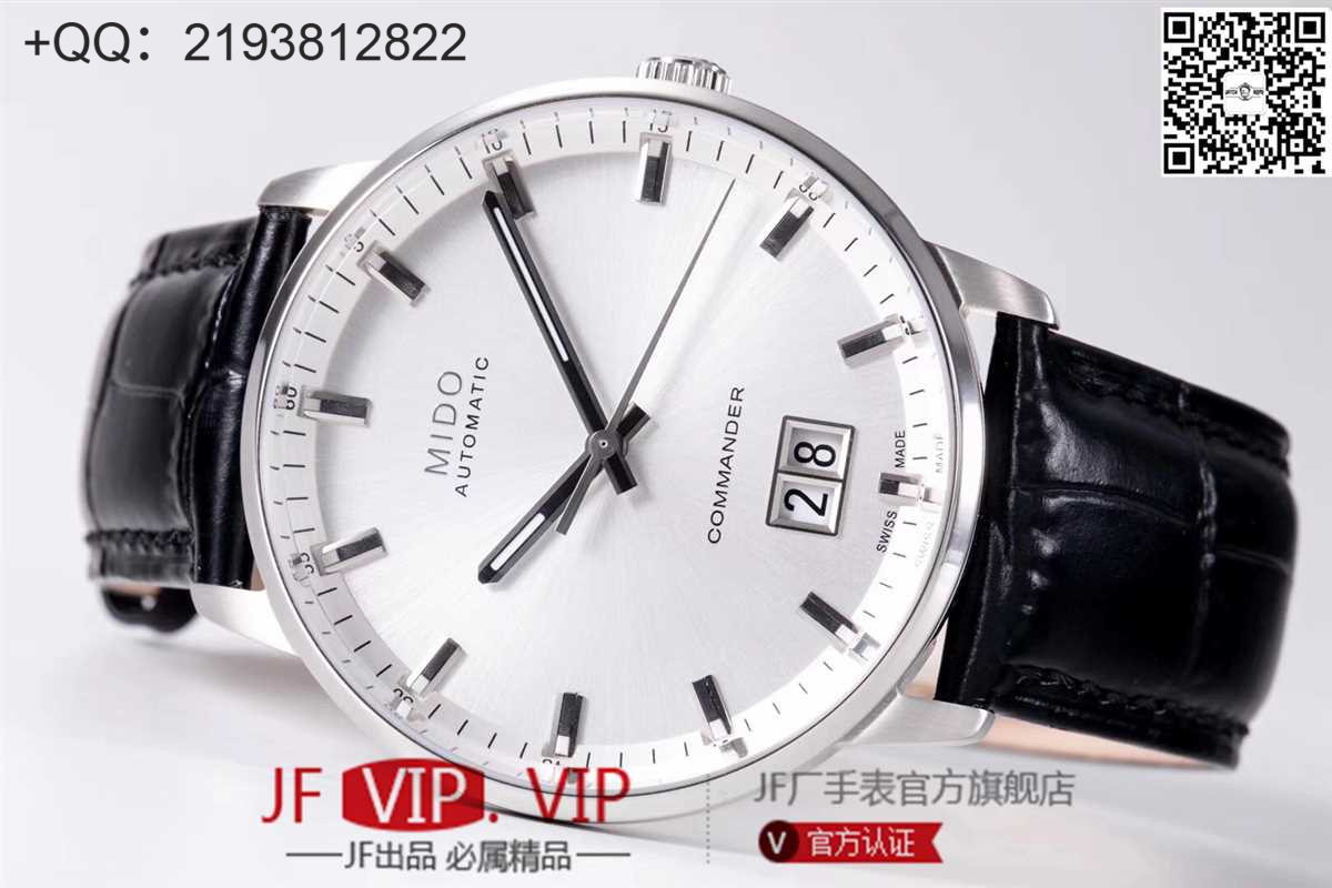 MIDO美度指挥官系列腕表指挥官系列纪念日“大日历”全自动机械腕表是为纪念美度表百岁华诞而问世的表款。其6点钟位置大型日期窗口,提供清晰的日期显示。放射纹缎面打磨的表盘风格简洁利落,雅致的圆形缎面打磨精钢不锈钢表壳更能发挥稳固的保护功能,抛光表圈的搭配更显画龙点睛的作用。表壳?材料: 不锈钢、 PVD(物理气化沉积)涂层?直径: 42.00 mm?表耳间距: 22.00 mm?防水: (50米/165英尺)?玻璃: 蓝宝石水晶镜面?表壳高度: 11.97 mm?透明底盖机芯?机芯型号: 全自动机械机芯?大型日期视窗表盘?表盘颜色: 烟煤灰色、银白色、黑色?运行时间: 镶贴时标表链?不锈钢、黑色皮革表带不锈钢采用高等级的316L不锈钢来打造精钢部件,从而使佩戴者在长时间佩戴腕表之后也不会造成不适感。这种材质具有抗腐蚀性、不受磁场影响,并具有出色的耐用性,使得美度表的不锈钢腕表经久耐用,能够经得起时间和天气的考验。另外,这种金属不仅具备多项技术特性,其色泽光亮的外观和令人愉悦的质地,也适合广泛应用于其他领域。PVD镀层物理真空电镀(PVD)是一道高技术的加工过程,能在腕表组件表面生成一层坚固、无杂质的镀层,以确保其长时间抗腐蚀的性能。这种细微薄层增强了腕表的硬度和坚固性,同时还可呈现黑色、玫瑰金或黄金等美丽色泽,增添其典雅美感。而它的低致敏特性深受各界喜爱,并被广泛应用于各种领域。表镜玻璃表镜玻璃能衬托做工精美的表盘,呈现惊人的立体纵深美感。它能在多种条件下确保时间的清晰易读,同时更与腕表的典雅设计相得益彰。坚固耐撞的特性让表镜经久耐用,即使多年后仍能保持其清澈无瑕的透明度。皮革采用纯正皮革制作其精美的天然皮革表带。由多层皮料手工精心制作和缝制而成的皮表带,除具备优异的耐用性之外,还因为其抗过敏的特性,而让佩戴更加舒适。美度表真皮表带的侧缘皆经过考究的上漆处理,更添隽永风范,呈现出高水平的做工和典雅的韵味。