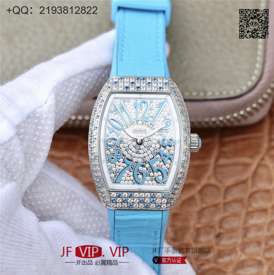 ABF法穆兰Franck·Muller V32 系列 1.字面以太阳压纹表盘或镶贴浮雕 数字真丁 与原版保持一致 2.一比一对比原装32mm表壳尺寸 三层设计 3 底盖采用可以与原版一致的防水结构 底盖用4颗螺丝链接表带 结构与原版一模一样 4.硅胶表带更加柔软舒适 与市面上低版本的成本差了几倍 市场上没有一家与原装表带可以通用 唯有ABF厂 高成本的投入研发 保证品质  5.瑞士超级夜光 高级批花针 更显档次 6 镶钻版本的表壳与字面 100%采用高品质手工镶砖工艺 斯华洛斯奇水晶钻 完美闪耀 市场普通版本都是用胶水粘石 效果品质上手体验感觉都很差完完全全的一眼假 #认准ABF出品 专注更完美复刻FM