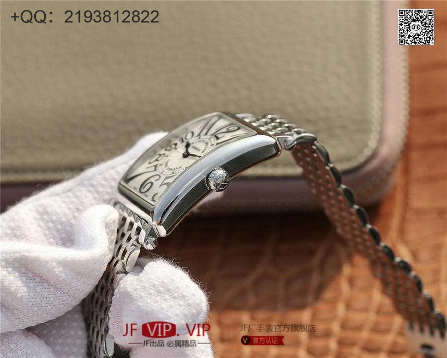 ABF法兰克穆勒LONG ISLAND 952 钢带版 迄今为止最高版本 原装壳厂图纸精心打造 原装型号机芯 进口316精钢 26*40mm 立式长方型表壳 设计优雅却不失动感,表壳精准弧形设计除了个性更适合日常佩戴、舒适贴手。底盖使用CNC数控精雕成型,精密度完美还原正品! 原装机芯 搭配原版鳄鱼表带 整块表所有配件可与正品互换,包括机芯!真正做到给它个专柜,它就是正品!