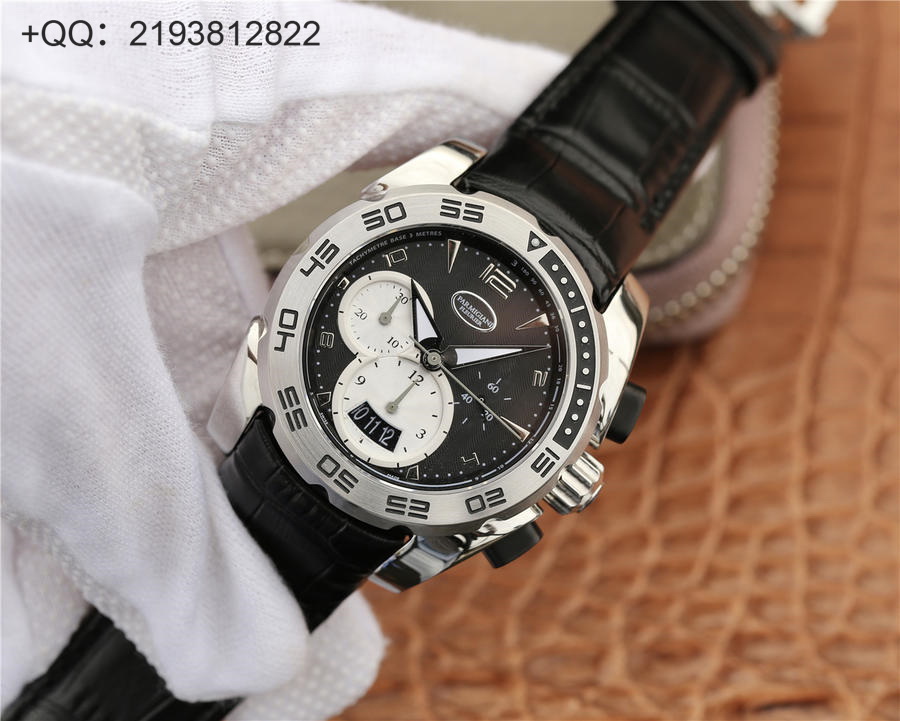 帕玛强尼Pershing系列男士运动版多功能腕表,搭载机芯进口7750#顶级全自动机械,3位小秒盘,6位9位计时盘,意大利精致小牛皮表带搭配原装折叠扣,进口蓝宝石水晶玻璃防损镜面,独特的勾玉状表耳设计,单向旋转圈,尺寸42mm。三度防水,超A工艺精心打造,原版1:1完美复刻,典雅贵气!