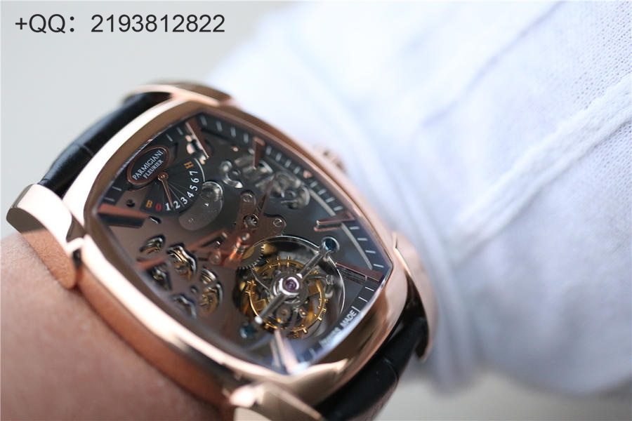 BM帕玛强尼TOURBILLON系列PF012512.01。真陀飞轮男士 手动机械 53x37.2毫米原版尺寸 男士 材质:精钢镀金 真皮表带