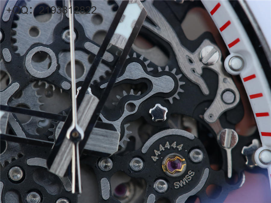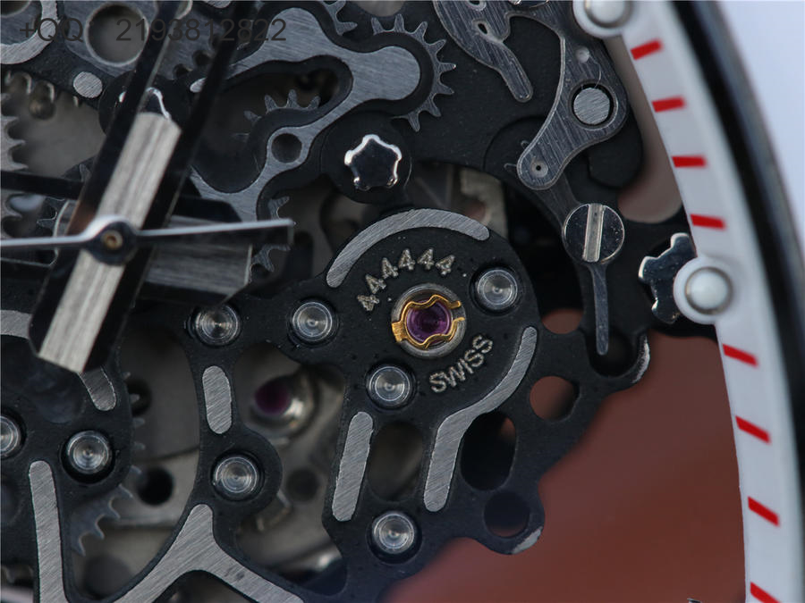 RM理查徳米勒RM055 表圈和底盖采用纳米陶瓷复合材料,具有耐划伤性和抗变色性,且陶瓷纹理清晰,外观臻于完美。无表盘设计,镂空机芯