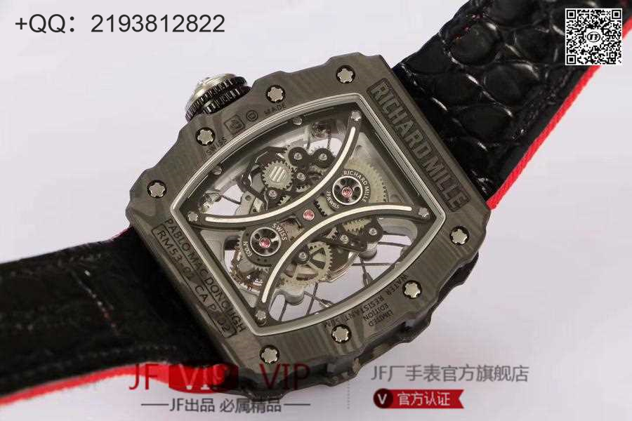 KV理查德米勒【RICHARD MILLE】RM53-01 这款腕表充满动感与活力。表壳由极为坚固抗震防损的TPT碳纤维加工制成,碳纤维