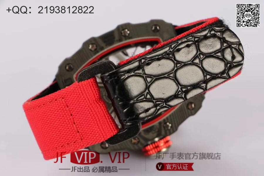 KV理查德米勒【RICHARD MILLE】RM53-01 这款腕表充满动感与活力。表壳由极为坚固抗震防损的TPT碳纤维加工制成,碳纤维独特的波纹光泽和犀利的表壳线条,更突显了这块腕表的运动风格;透过防眩光的表镜,可见到悬浮式镂空机芯,机芯采用4根钢索悬挂在表壳内,可承受超强的外力冲击保护。