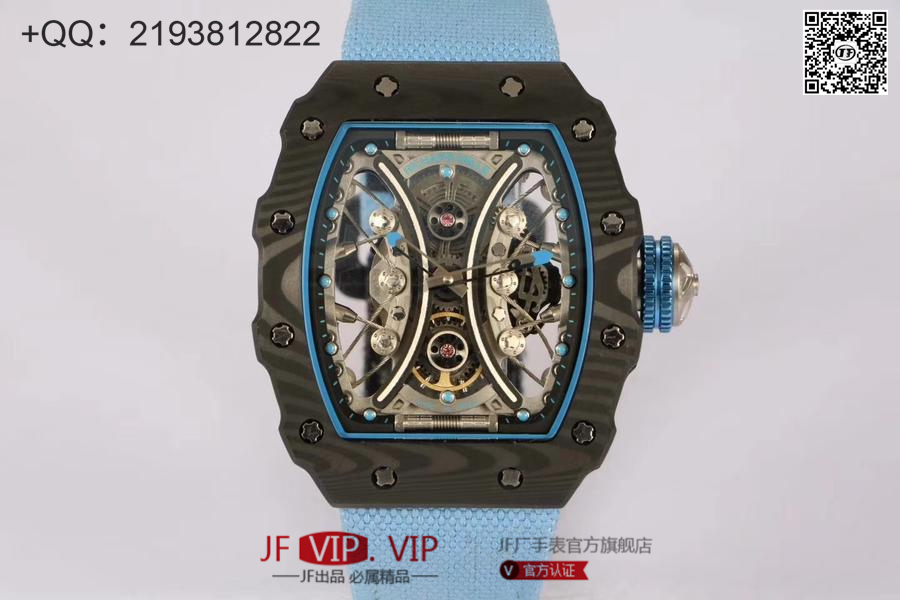 KV理查德米勒【RICHARD MILLE】RM53-01 这款腕表充满动感与活力。表壳由极为坚固抗震防损的TPT碳纤维加工制成,碳纤维
