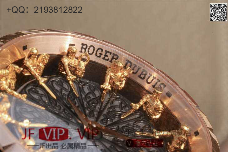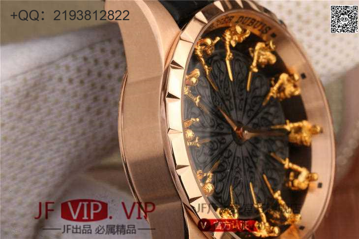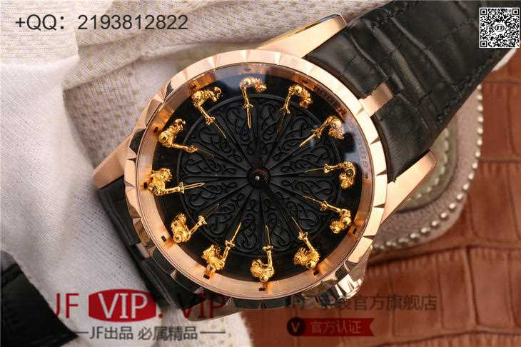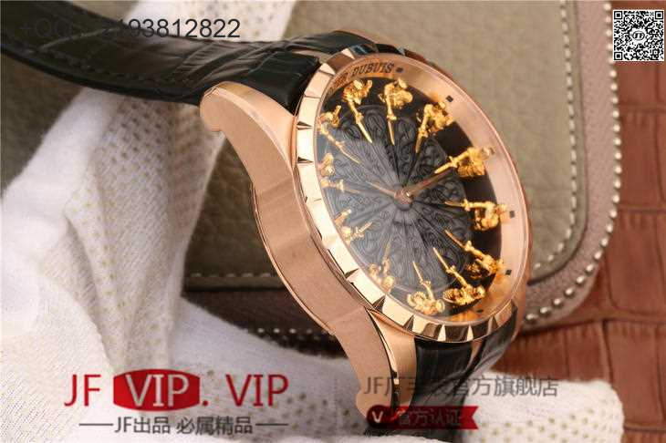 罗杰杜彼圆桌骑士型号:RDDBEX0511 表盘:彩色珐琅工艺表盘 表壳:316l精钢 电镀18k金 尺寸:45*15.7mm 机芯:miyota自动机械机芯 注意!!! 因为工艺复杂 装配难度较大 本款腕表并不适合量产 所以出货数量极少,希望可以谅解。 本次特意定做了美洲黑色竹节纹路鳄鱼皮,有需要的可以下订单。
