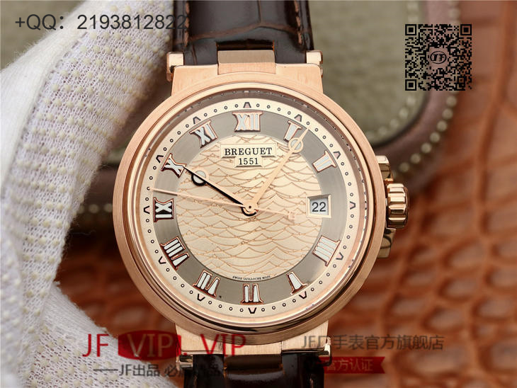 V9宝玑MARINE航海系列5517款腕表,航海天文钟的起源作品,“时计本是兵家利器”说的就是这款腕表,钟表界的巨作。工厂全面抄写原装数据,98%还原壳型字面,彰显原装优雅硬朗的气质,以进口9015升级为原装同款777A自动机械机芯,镌刻独立编号与宝玑先生签名。直径40毫米,表壳外缘饰有钱币饰纹。正反均为蓝宝石防刮玻璃,旋入式防水表冠。实测防水深度100米。 搭配饰有太阳放射纹表盘,配装意大利鳄鱼纹真牛皮,另送一副原装胶带,一表两戴,以零头的价格给您带来原装超值体验