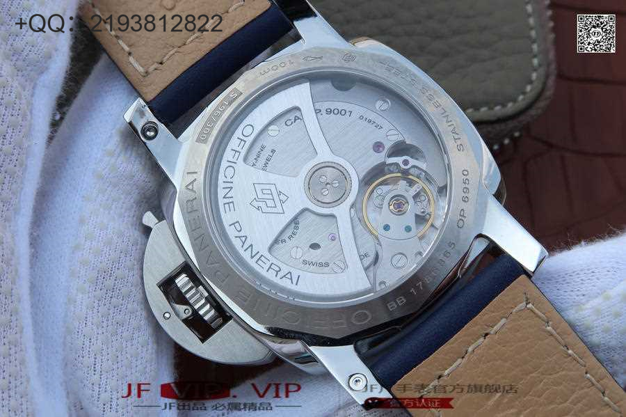 3、原装一致的异地GMT调时功能腕表。 经过两年多的研发,克隆了原装全自动p.9001机械机芯,通过背面透底可以看出避震器摆轮位置改到了7点钟对应的位置,和原装位置一摸一样,其他版本都是在10点钟位置或6点钟位置!彻底解决沛纳海复刻表机芯的外观缺陷,提升机芯稳定性和精准度,V2升级版P.9001机芯的摆轮和摆轮甲板位置和沛纳海原装正品完全符合,彻底区别于国产7750的外观。一体机芯的设计,大大提升机芯的稳定性和精准度,延长机芯使用寿命。每只机芯从生产组装,到成表,经过了层层检测,确保机芯稳定性,综合日误差控制在8s内(瑞士钟表的标准是15s内)。全新的V2升级版P.9001机芯和原装正品功能一致!将给全世界的沛纳海复刻表粉丝们带来更好的使用体验,你值得拥有!零头的价格享受专柜的品质!42mm壳径 小手腕福利! 沛纳海款式中不常见的独特"缎面太阳放射饰纹蓝色面盘" 正如蔚蓝海洋在太阳光线下折射出的蓝色光辉,彰显沉稳大气,同时装载Luminor1950招牌护桥依旧不减威风。