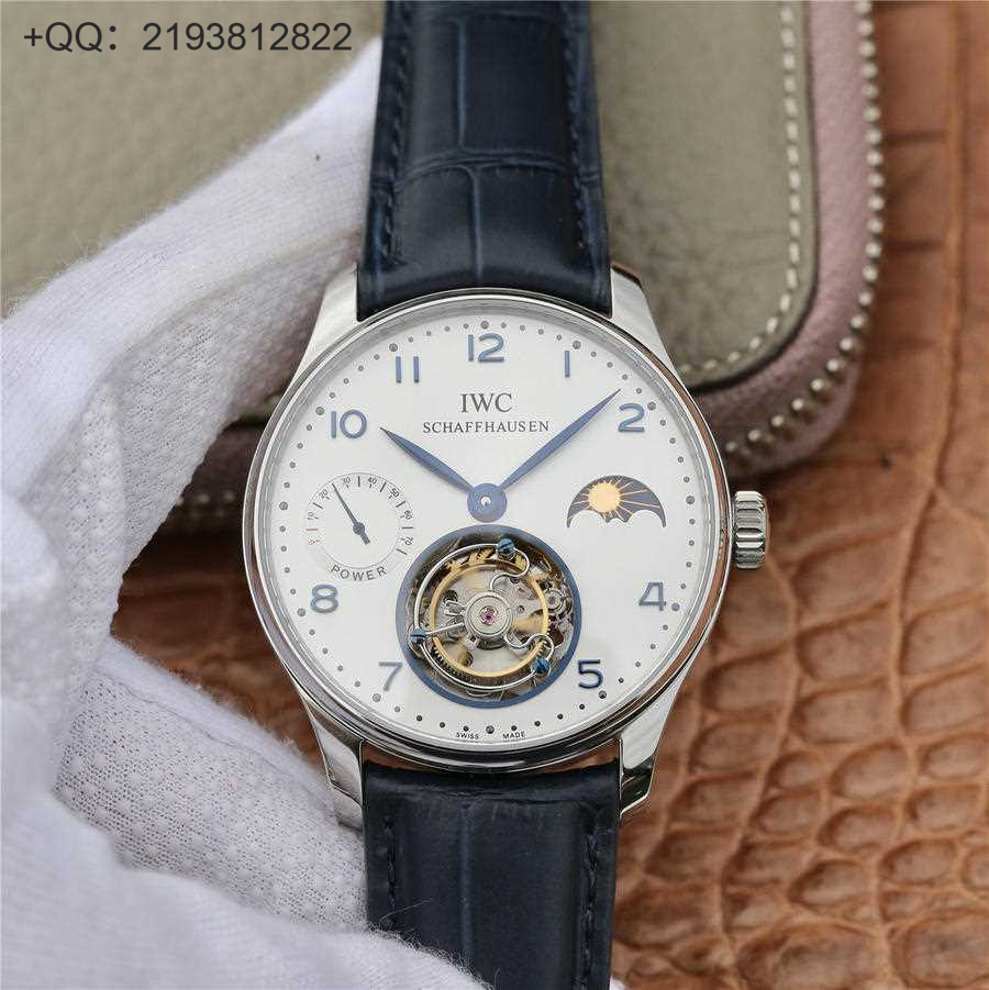 万国IWC陀飞轮V2版,葡萄牙动力日月星辰系列真飞轮,搭载72小時动力显示24小時日月星辰,顶级手动真飞轮机芯,蓝宝石水晶玻璃