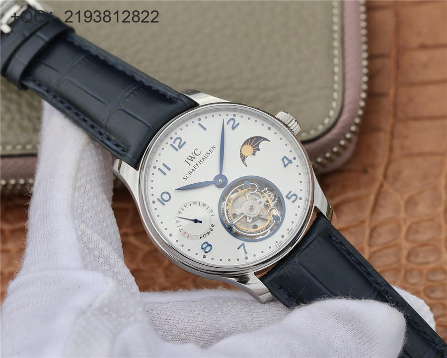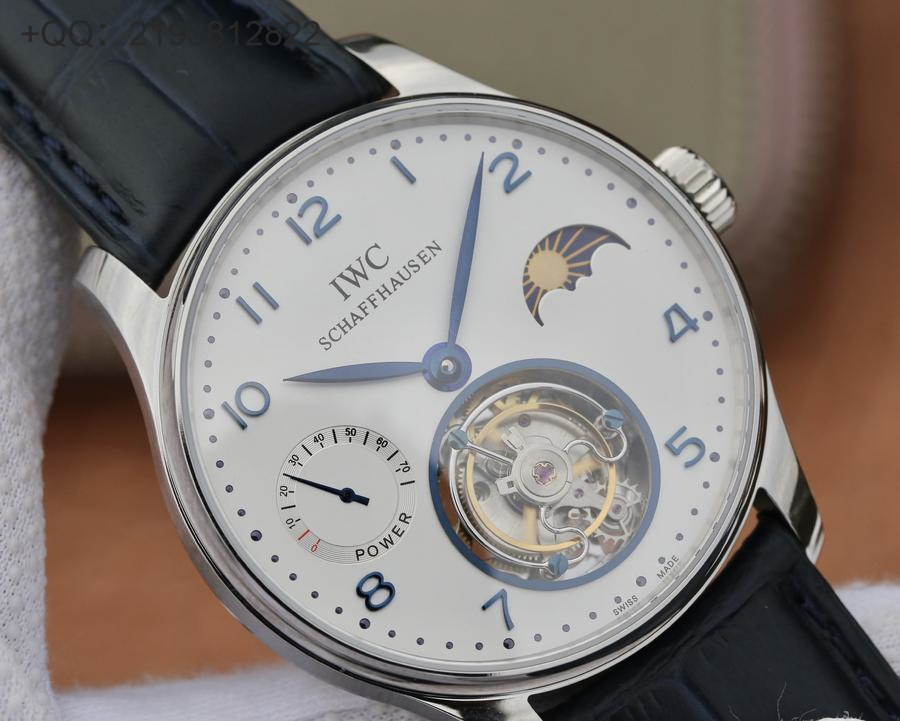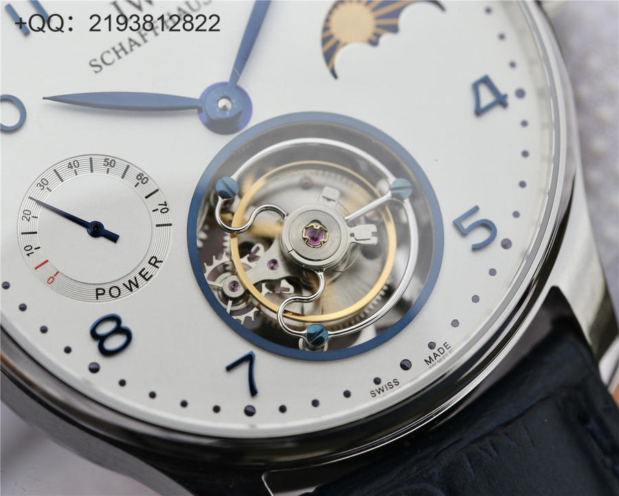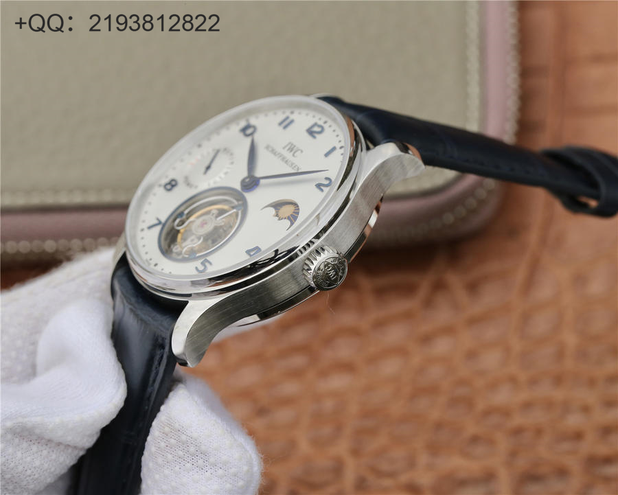 万国IWC陀飞轮V2版,葡萄牙动力日月星辰系列真飞轮,搭载72小時动力显示24小時日月星辰,顶级手动真飞轮机芯,蓝宝石水晶玻璃,直径42mm,厚度12.5mm。