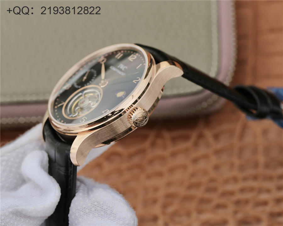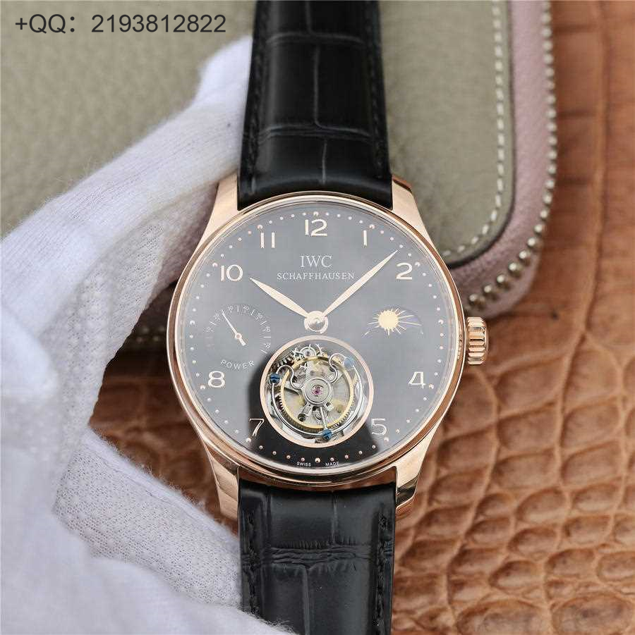 万国IWC陀飞轮V2版,葡萄牙动力日月星辰系列真飞轮,搭载72小時动力显示24小時日月星辰,顶级手动真飞轮机芯,蓝宝石水晶玻璃,直径42mm,厚度12.5mm。