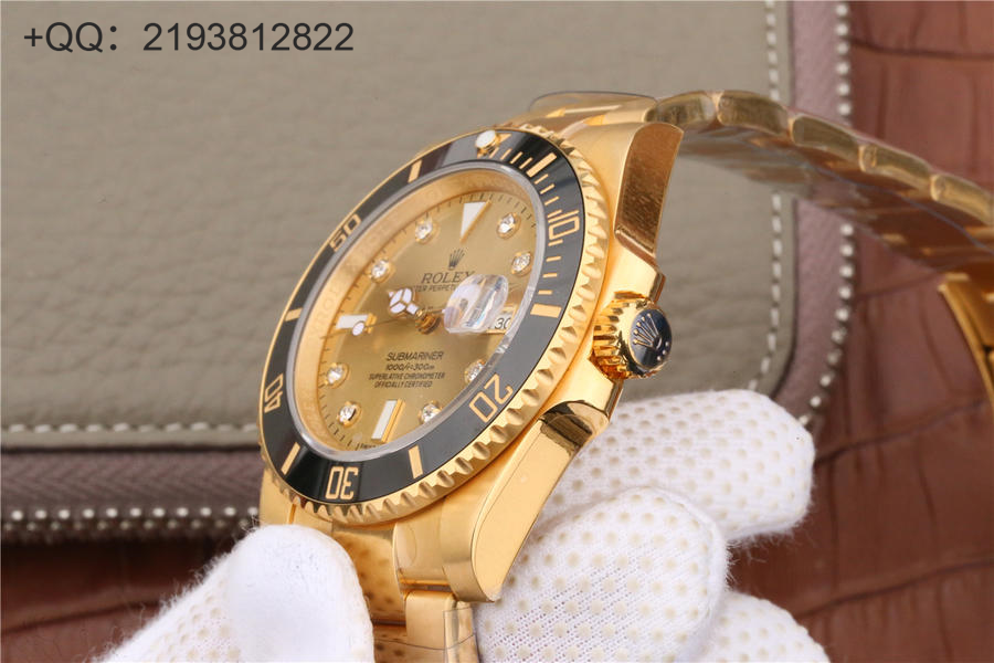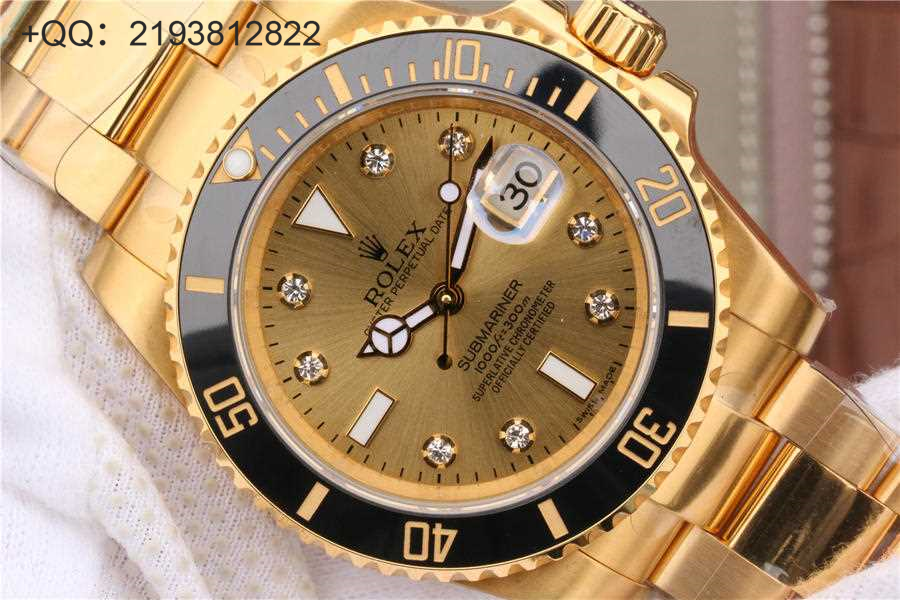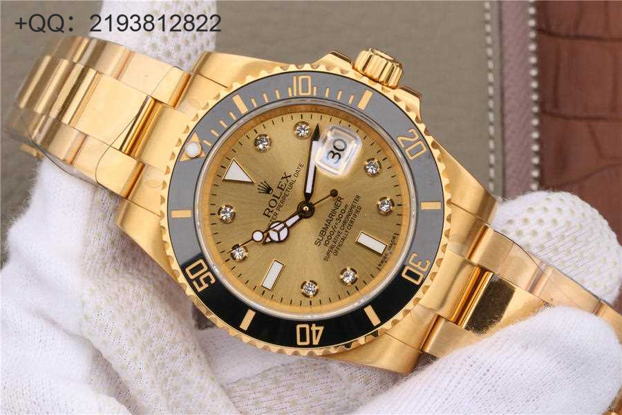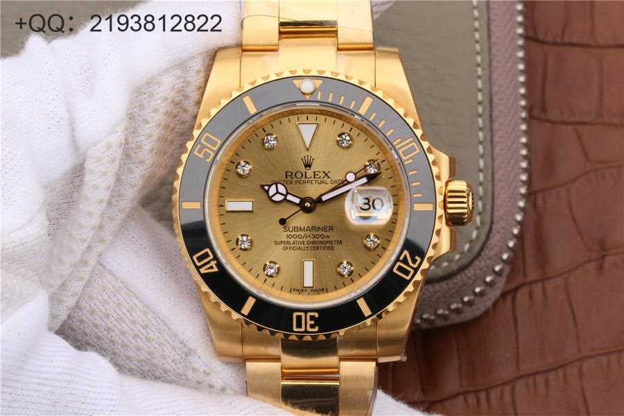 N劳力士全包金(11微米厚)水鬼v7版,型号116618金面限量版,纯进口瑞士ETA2836自动机械机芯,正品背面的四个角的钢印就是高压冲打上去的,我们也是,但是市面上的都是激光或者腐蚀上去的,凹陷深度完全不够、狗头标简直不堪入目。我们的钢印和正品一模一样(贵金属750标、瑞士750纯度标、日内瓦狗头标、劳力士LOGO标)。全身包18k黄金与铂金混合,成色和原装一模一样,不放过任何死角,就连表扣螺丝,生耳,全部包金11微米,真正的纯750黄金,永不掉色,再也不用担心掉色褪色带来的尴尬。NOOB出品,只做最好的劳力士副本。直径40mm.表镜材质:蓝宝石水晶玻璃。防水深度:300米