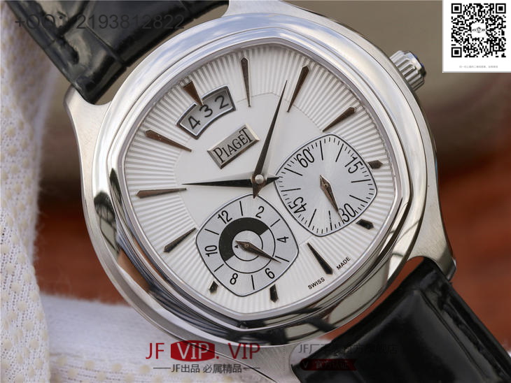 【机芯】采用稳定耐用的9015机芯改伯爵自产850P机芯。做工精湛的机芯不仅拥有时,分和小秒针显示。同时还具备能区分昼夜和第二地时间的强大功能,并配有大型日期显示窗。百分百还原正品功能。
