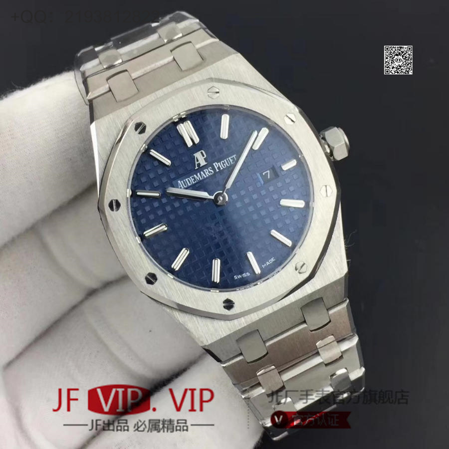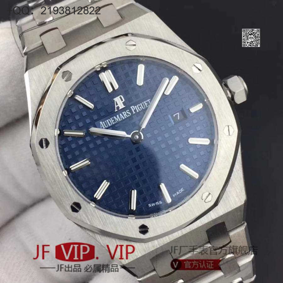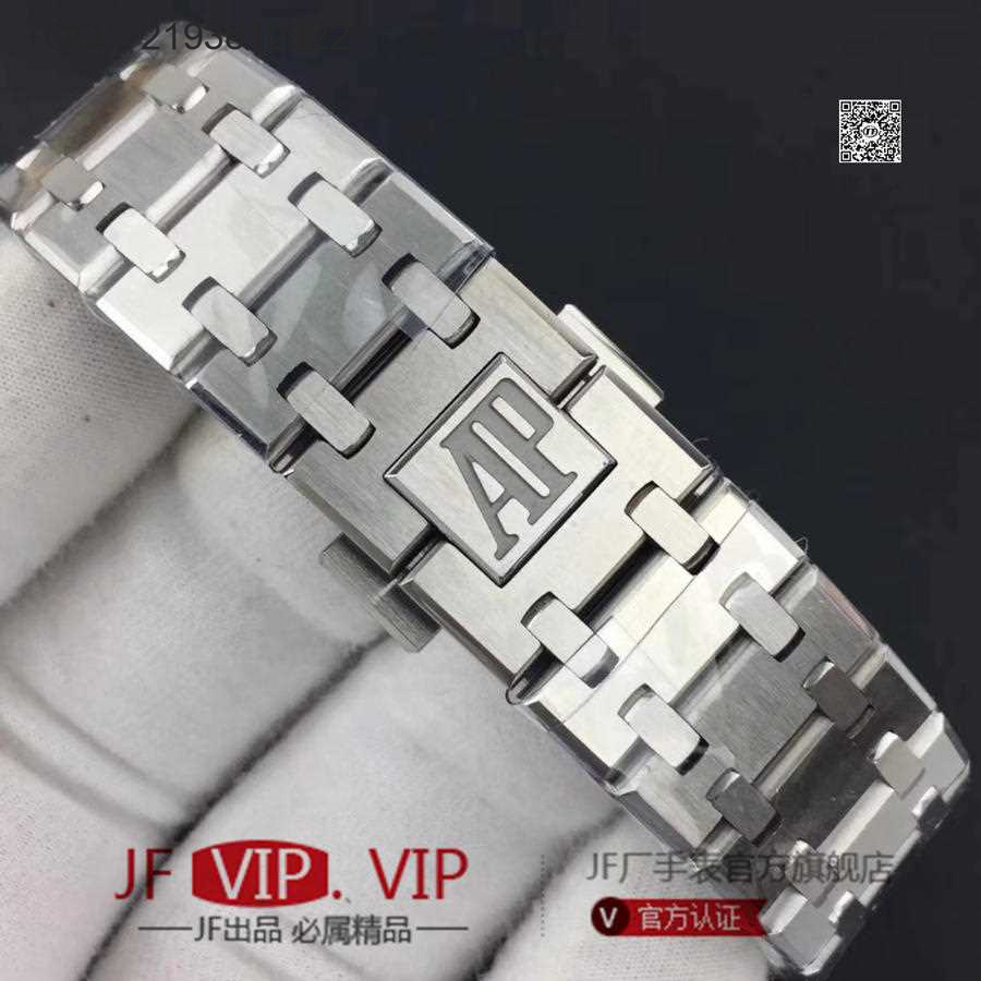 JF爱彼67650,行业唯一买正品开模,厚度与结构和原版一样 釆用原版同类ETA石英金色机芯,ETA石英机芯是12点快跳日历。表带罗丝双边抛光和扣子唛头完全原版一致。67650系列全新升级包装配套。每个表都有独立的吊牌和身份证号 表直径33毫米。