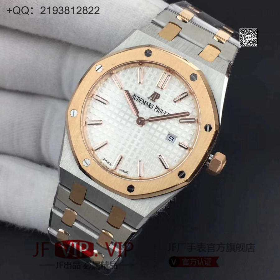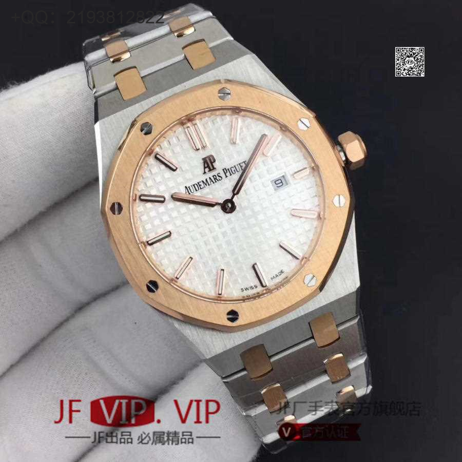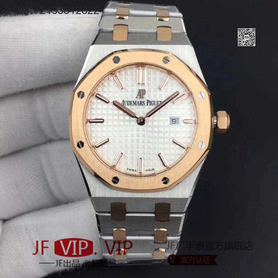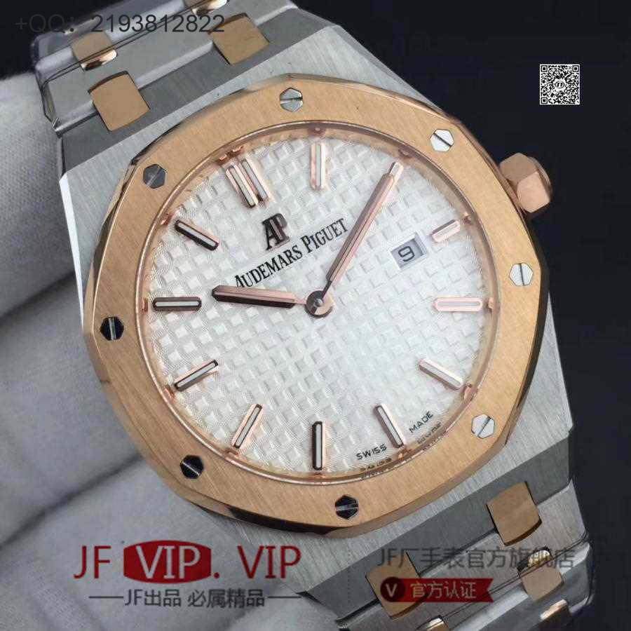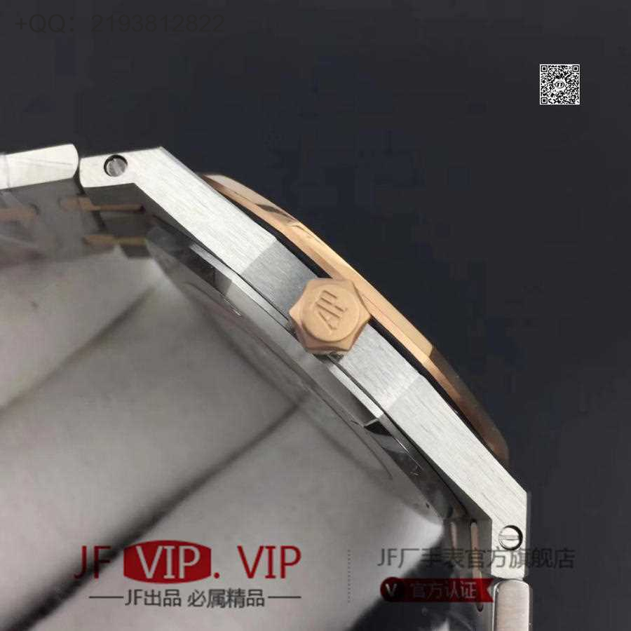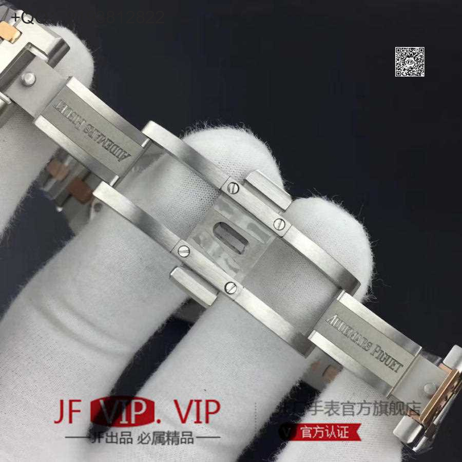 JF爱彼67650,行业唯一买正品开模,厚度与结构和原版一样 釆用原版同类ETA石英金色机芯,ETA石英机芯是12点快跳日历。表带罗丝双边抛光和扣子唛头完全原版一致。67650系列全新升级包装配套。每个表都有独立的吊牌和身份证号 表直径33毫米。