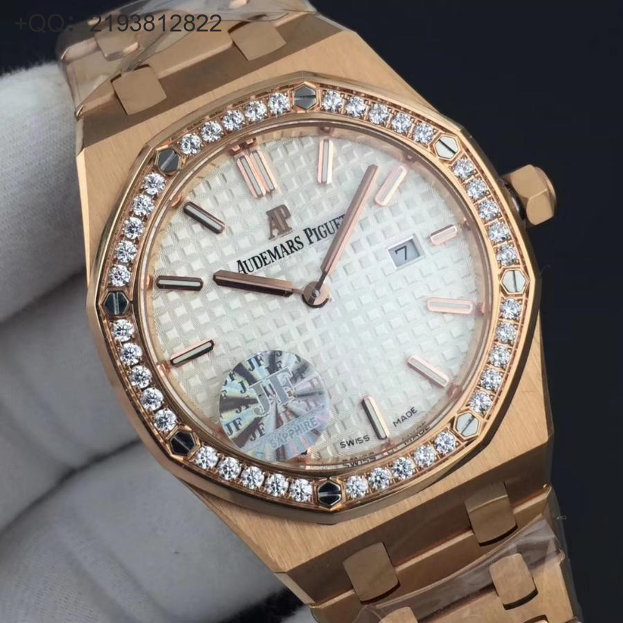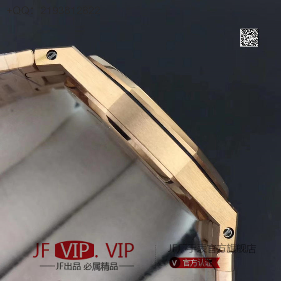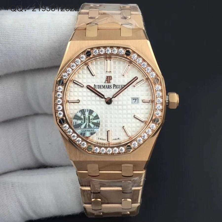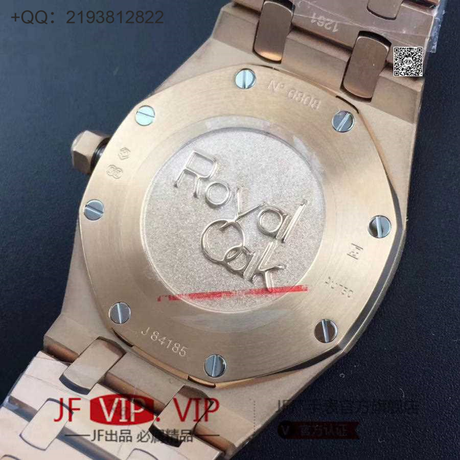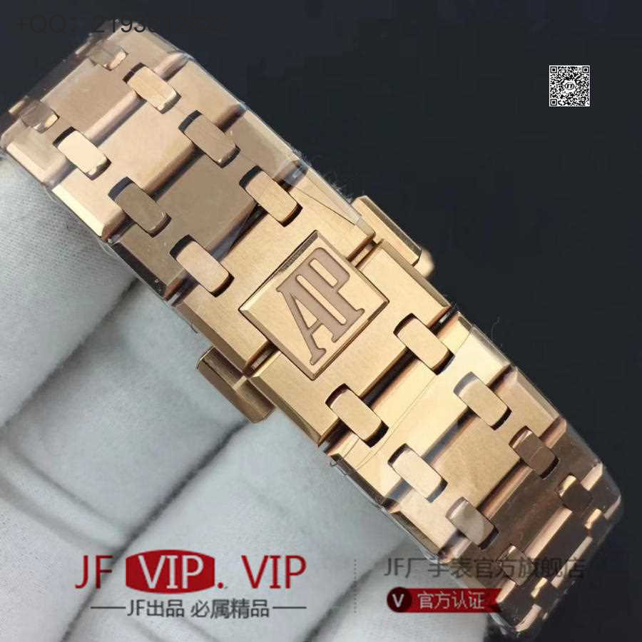 JF爱彼67650,行业唯一买正品开模,厚度与结构和原版一样 釆用原版同类ETA石英金色机芯,ETA石英机芯是12点快跳日历。表带罗丝双边抛光和扣子唛头完全原版一致。67650系列全新升级包装配套。每个表都有独立的吊牌和身份证号 表直径33毫米。