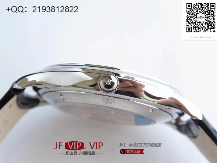 ZF积家超薄大师1288420腕表优雅登场。极致简约,成就经典,干净素雅,商务首选。【表壳】腕表尺寸40mmX8mm。超薄的表壳线条流畅,优雅的表耳舒适贴手。ZF精益求精,诚心诚意还原正品风貌【机芯】精准而低返修的9015机芯改积家自产899型机芯【表带】采用进口意大利小牛,纹理自然,质地柔软,佩戴透气。