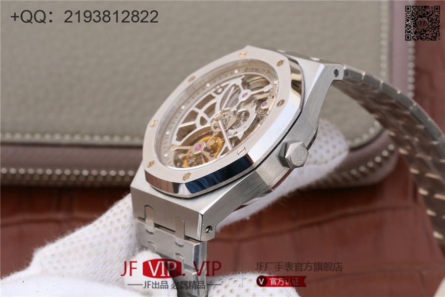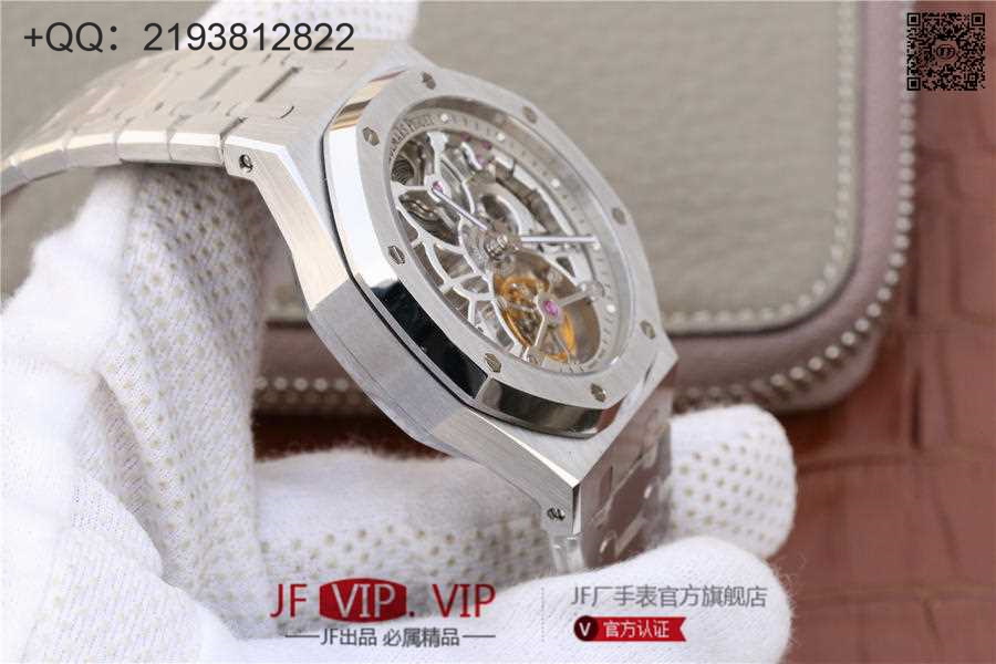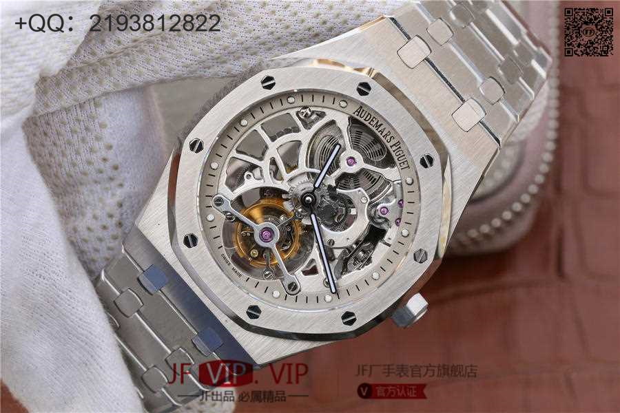 爱彼2018新款皇家橡树26518真陀飞轮男士腕表。这是一项对精度密要求极其严苛的高级制表工艺,丝毫分差都可能会影响机芯的走时精度或防震效果。这款全新腕表均搭爱彼自主研发的镂空Camber 2924手动上链机芯,动力储存为80小时,表壳直径41mm厚度12.4毫米。早在1930年代,爱彼就已经掌握镂空装饰这一精密高级工艺,时至今日依然保持着传统制作方式:通过锉削、装饰、直至最终的装饰打磨,出于美学与技术的双重考量,需要完全通过手工完成。