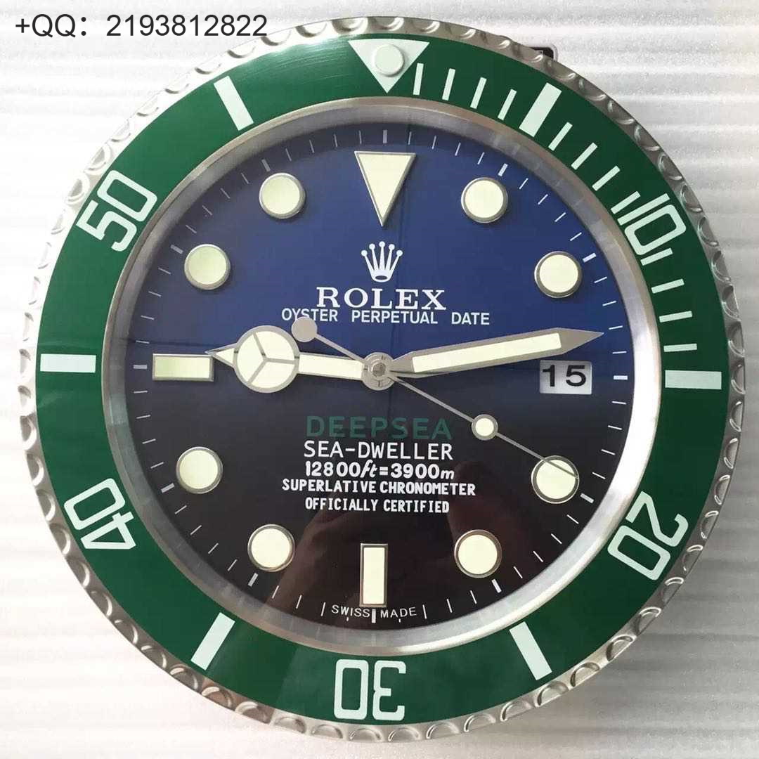 劳力士挂钟,尺寸:直径34cmX厚5cm。精钢外壳,亚克力镜面,超强夜光。请区别市场便宜版本。